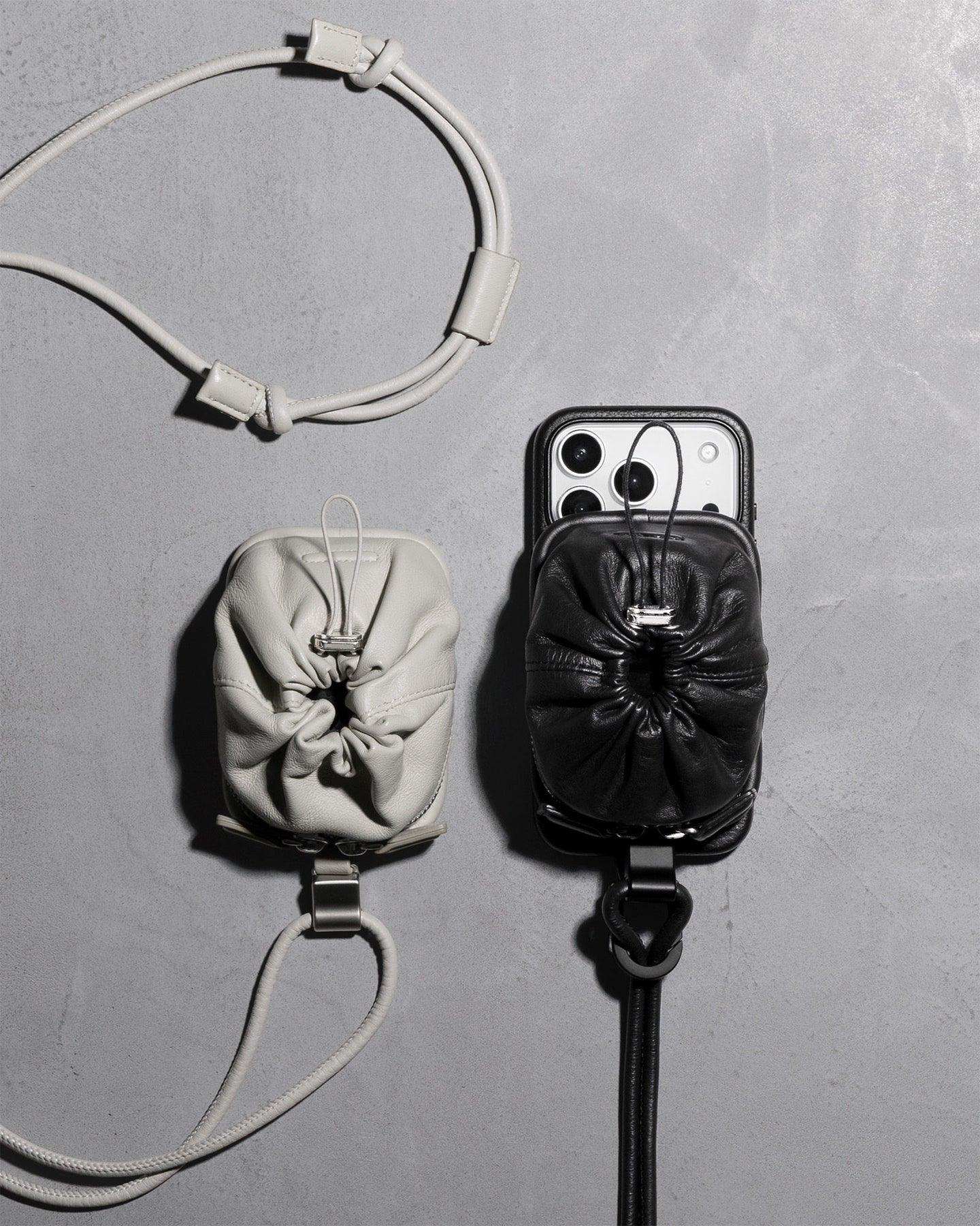 ・レザー製iPhoneケースとシープレザー製パースを組み合わせて使用。