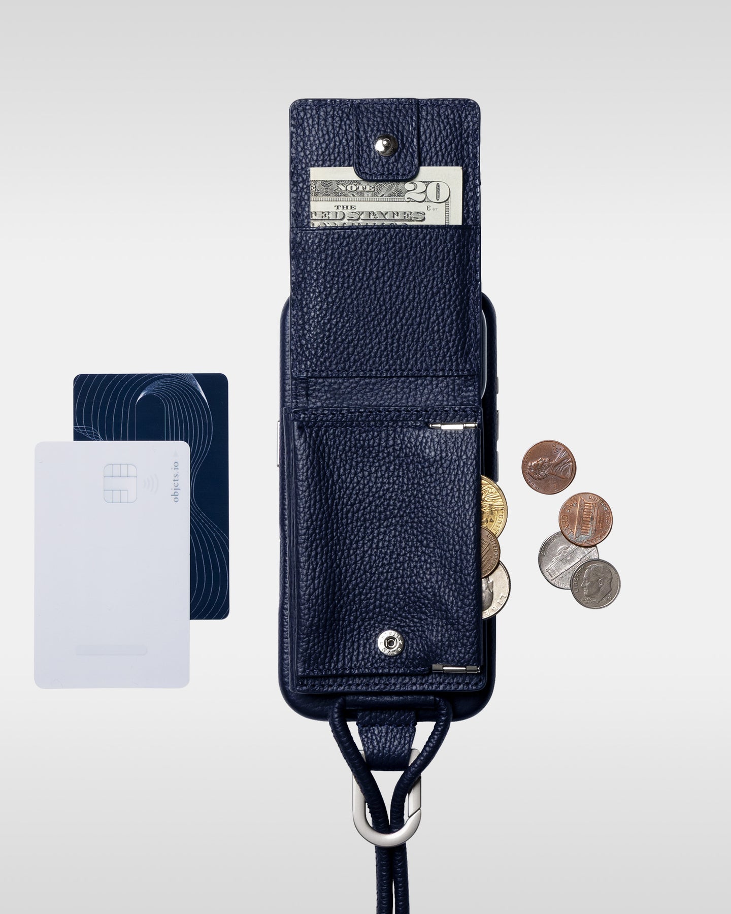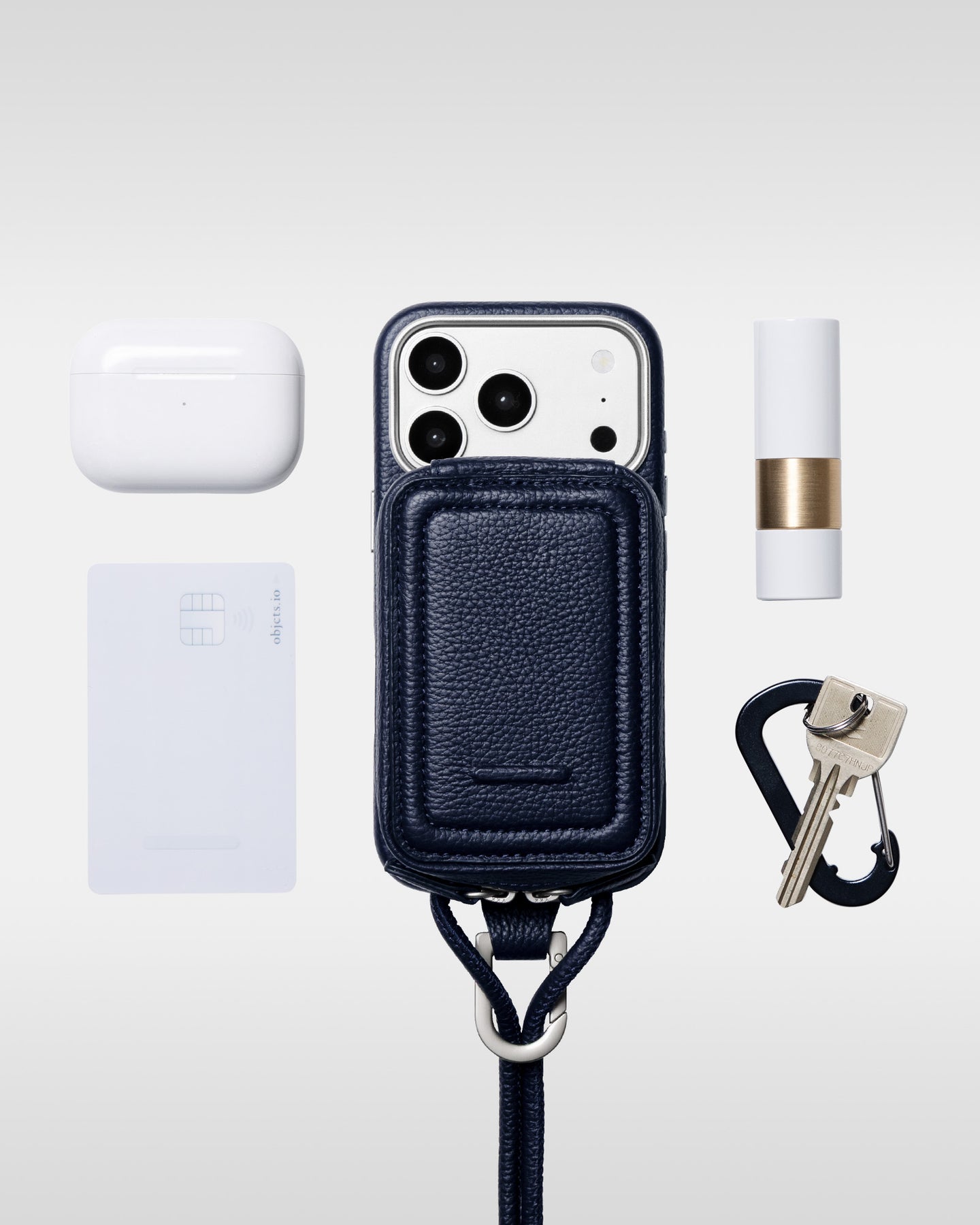 デバイスの滑落を防ぐため、ストラップ付カードケース・ウォレットは、objcts.ioのカラビナ付本体ケース以外に装着してのご使用をご遠慮いただけますと幸いです。